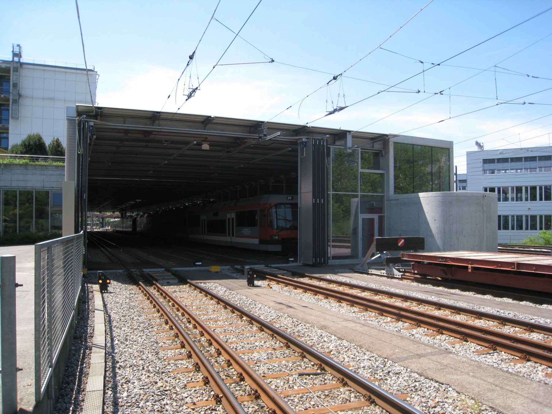 Bau eines Depots mit Unterflurdrehanlage in bestehende Gleisanlage. Gleisüberdeckung unter Betrieb.