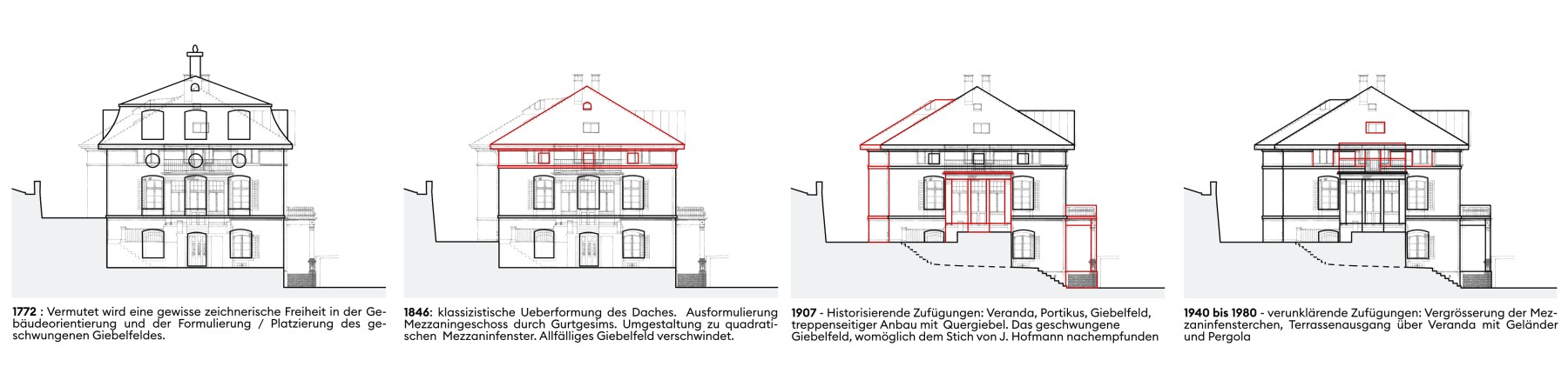 Der heutige Ausdruck des barocken Gebäudes wird weitgehend durch die klassizistische Regelmässig- keit und Klarheit des Umbaus von 1846 bestimmt. Für die anstehende Instandsetzung dient uns der Klassizismus als Referenz: