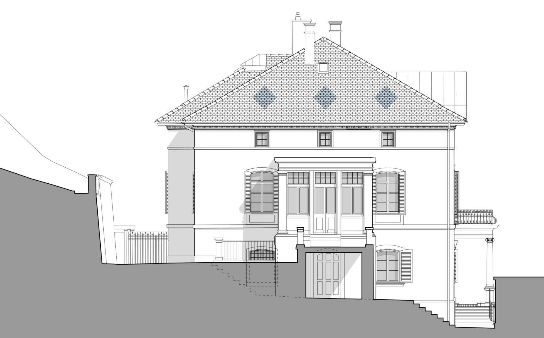 Neu Bauen - Neue Elemente sind klar als solche zu erkennen. Die Regelmässigkeit und Klarheit des Klassizismus ist dafür Ausgangslage. Neue Elemente sind immer Neuinterpretationen die sich an den Kennzeichen des Klassizismus orientieren aber nie historisierend sind.