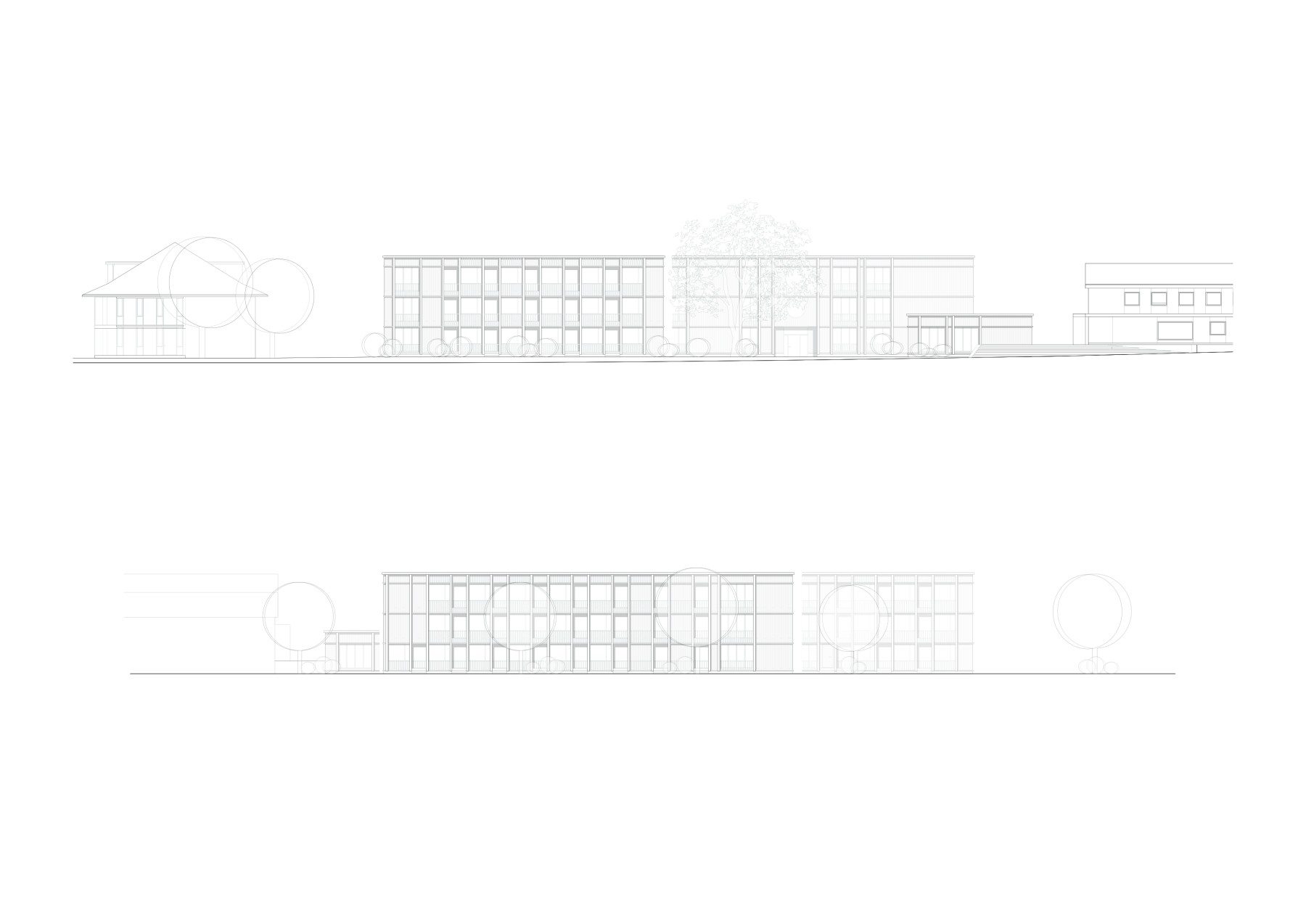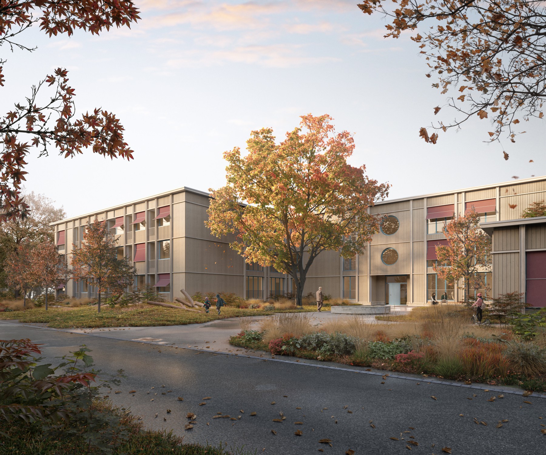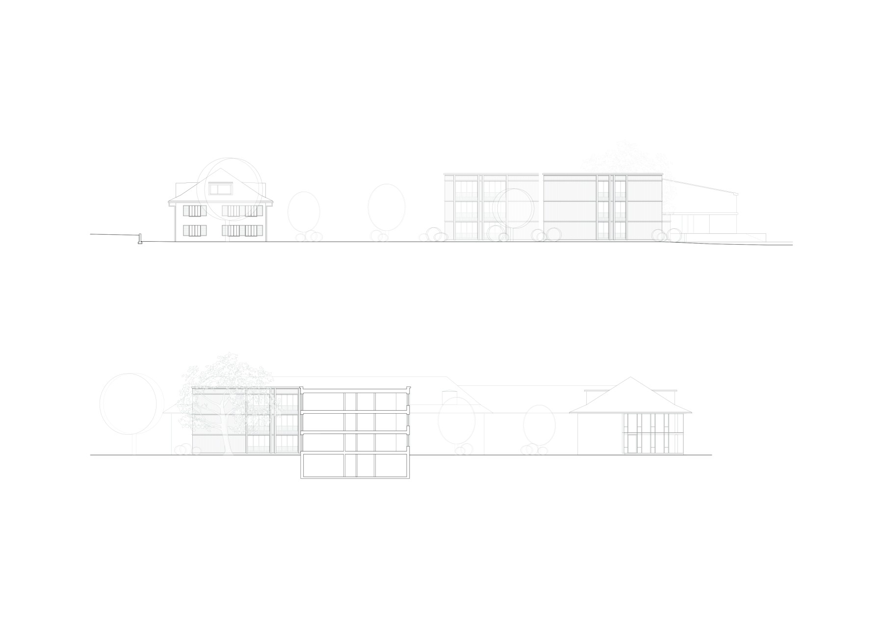 Im Perimeter ”Alleegarten West” ist ein Zeilenbau geplant, der mit einem volumetrischen Versatz präzise auf das Umfeld reagiert und die bestehenden Qualitäten der Aussenräume akzentuiert und respektiert. Die grosszügigen Proportionen des Gartenhofs bleiben erhalten der markante Bergahorn innerhalb des Bebauungsperimeters steigert die Adressbildung des Neubaus.